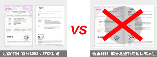 順為特鋼成份達標(biāo),符合ROHS、SVCH等相關(guān)標(biāo)準(zhǔn)。順為承諾:材質(zhì)化驗成分不足或假貨,假一賠十。